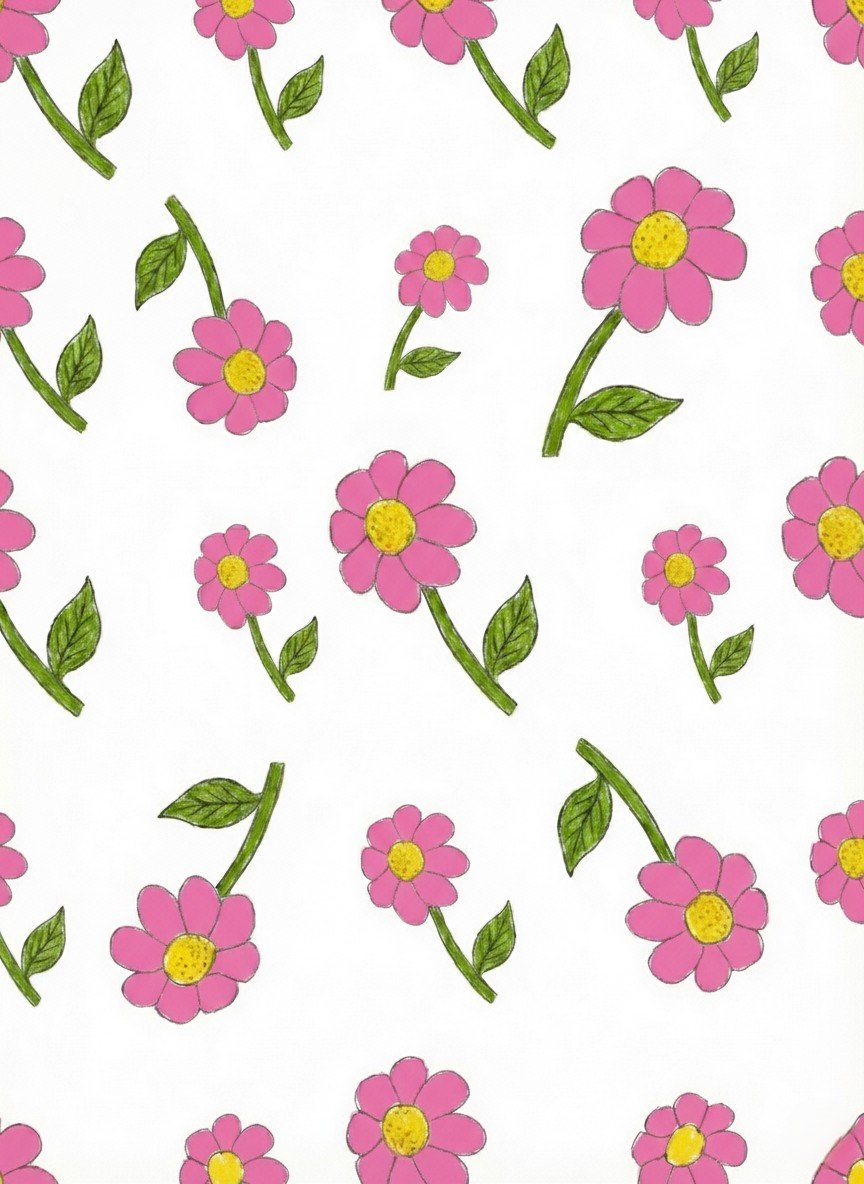 Pattern Details: This design features a playful “toss” or scatter repeat of stylized, hand-sketched flowers with natural linework. The petals are fully saturated for a bold, artistic look.